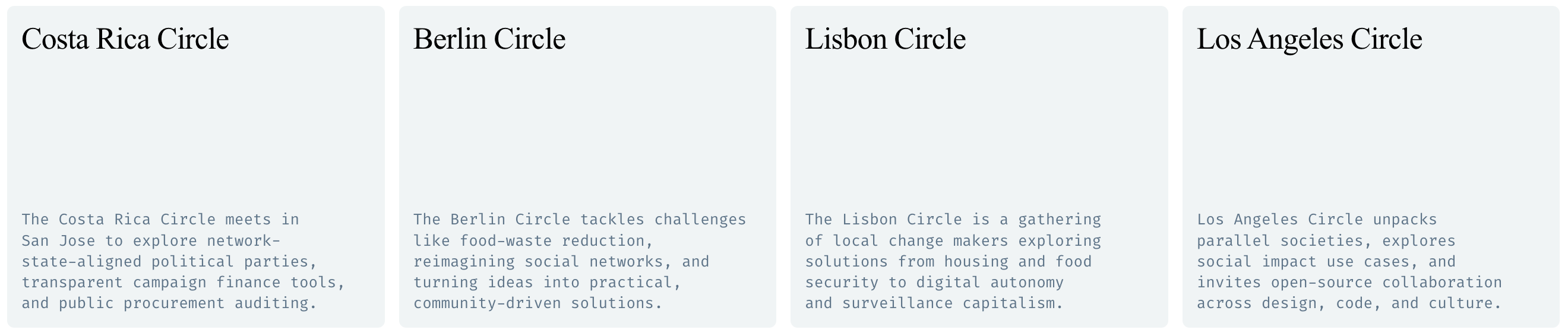 e.g. The Rome Circle (broadly identified as Urbe) wants to (1) demystify Blockchain for local builders. This was narrowed down to (2) organizing Web3 workshops, bootcamps, hackathons. (3) So we took action and onboarded countless builders into Web3. (4) Today, several hundred students have participated in Urbe bootcamps, we have hosted 3 consecutive years of ETHRome hackathon (birthing success stories like Fluidkey) and we manage one of the first Ethereum Community Hubs.